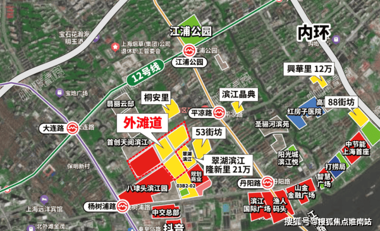 『中信泰富外滩道』杨浦滨江南段,八埭头巨无霸综合项目核心混合地块——杨浦区平凉社区01E4-03地块。东至通北路、西至景星路、南至平凉路、北至榆林路;项目到黄浦江距离仅500米。