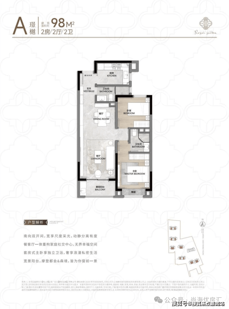 建面约94-100㎡的两房A户型是千万总价入主静安内环的理想之选,最高超79%的得房率,室内几乎没有走廊等空间浪费;动静分离,主卧套房设计,配独立卫浴间,居住舒适;次卧功能定位多样,可做多功能儿童房、书房、工作室、电竞房等等;阳台尺度宽适,增加实用空间的同时,还可为宠物设计一处梦想乐园.