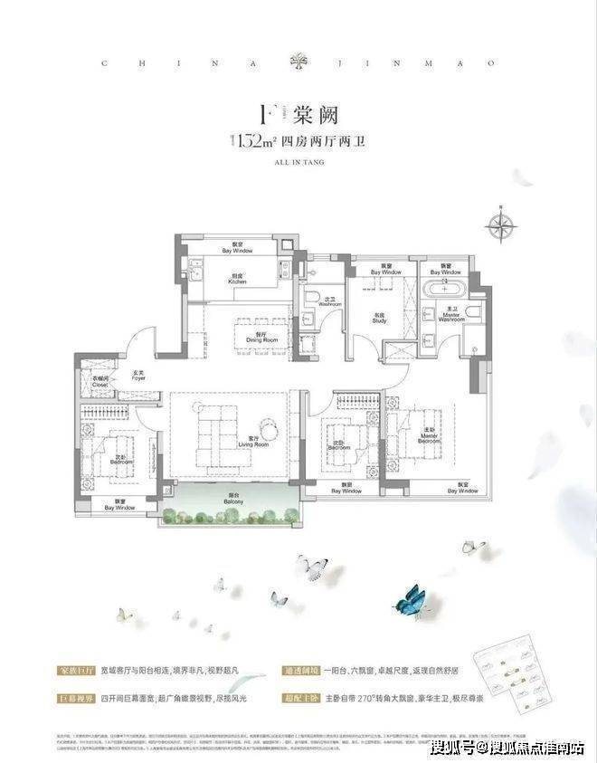 上海宝山金茂棠前营销中心热线4008818994(官方预约热线)足足2个阳台+4个飘窗,2个卧室,1个卫生间,1个厨房全部“扩容”,尤其是主卧270°全景飘窗的设计非常少见,未来窗外的胜境将一览无余。