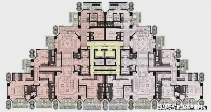 外部设计已经足够令人震撼,内部户型更是壕到无法想象。独特的金字塔设计,仪式感超强。所有住宅单元都尽可能南向,拥有360°采光的同时不浪费一丝一毫的江景。