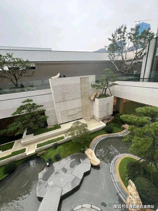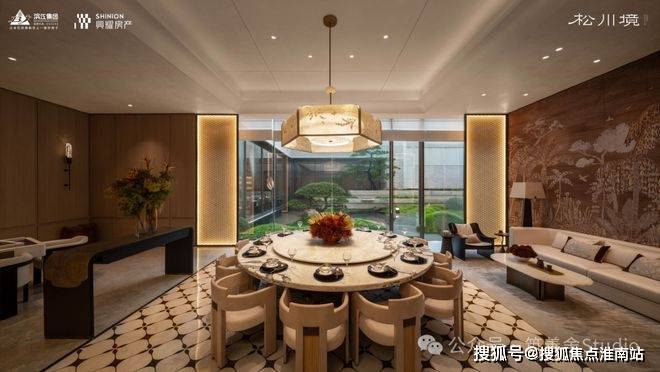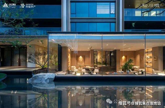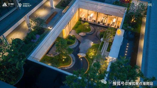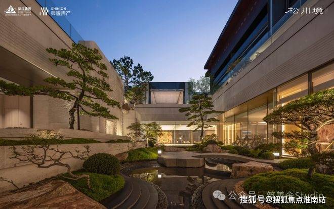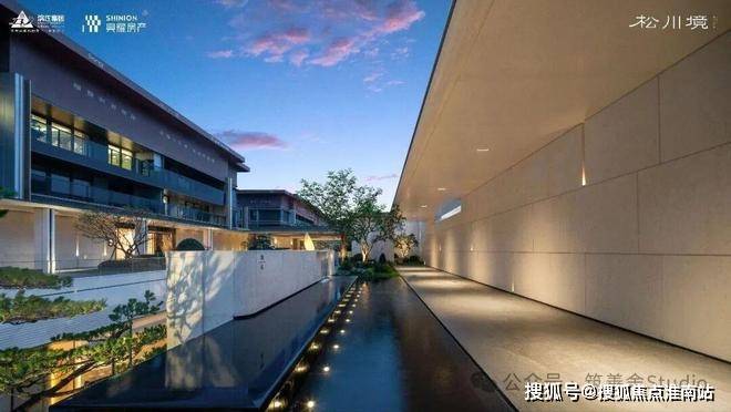 约3300平方米的中央景观,下沉式庭院与双水院景观错落有致,将《松阁观潮图》、《溪山行旅图》、《山亭文会图》三幅宋代古画,巧妙融入松川境的立体山水之中。高层与排屋区之间,一条长约210米的中轴景观横贯东西,串联起「松川十一境」的雅致画卷。该项目景观设计由北京顺景园林执笔。