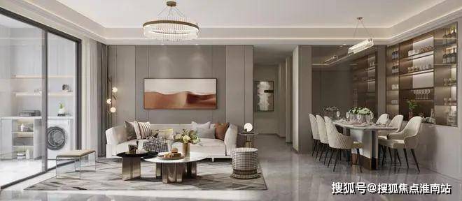 客餐厅相连,客厅南连宽景阳台,3米层高+奢阔面宽,整个空间开阔感一下子铺展开来;