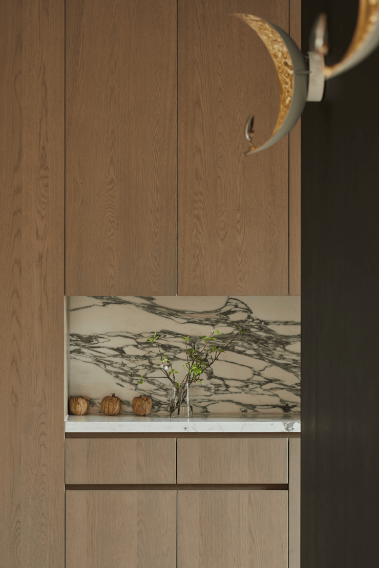 翡梵的建筑外立面采用 进口葡萄牙砂岩+手工铜艺雕花,每一块石材均经 抗冻循环测试,历经风雨仍历久弥新。斜坡屋顶与弧形老虎窗复刻巴黎十六区贵族宅邸,让住宅本身成为一件艺术品。