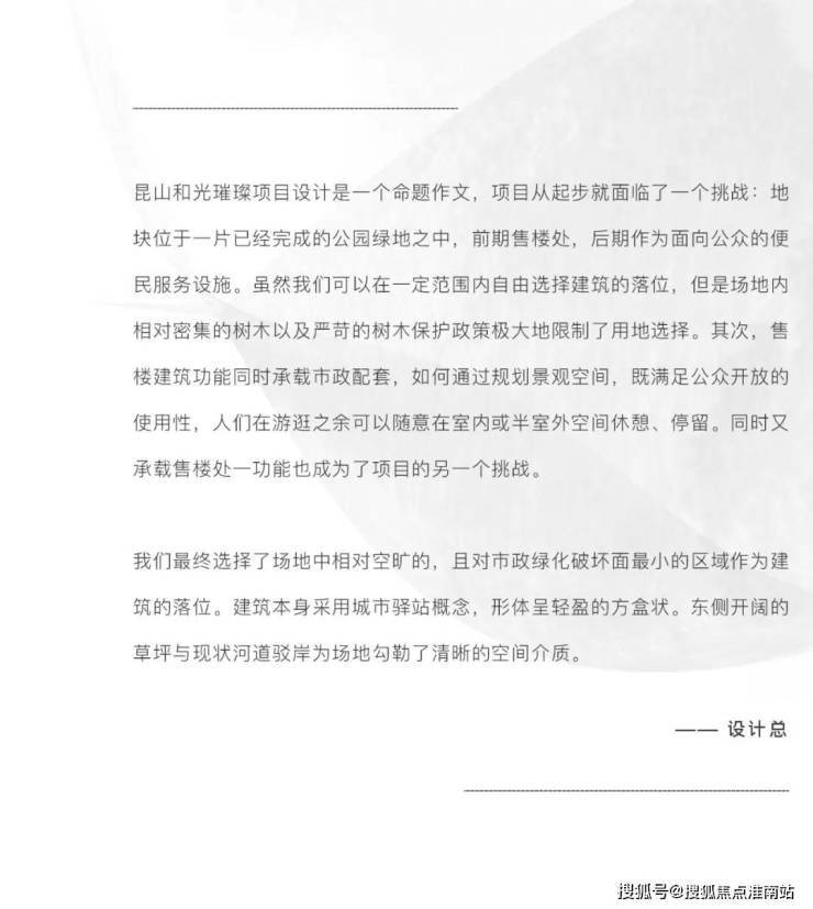 和光璀璨位于昆山市玉山镇,该项目由招商和保利两家央企联合打造,项目以园林水乡为概念,离尘不离城,打造昆山城西首个定制五重仪制空间,以两轴、一环、八园的景观结构,塑造酒店般尊贵归家体验,真正的做到“出则绿意融融,入则静谧独享”,打造了一个“公园+住宅”的现代居住模式。此外项目采用了人车分流模式管理,地上行人、地下行车,保障业主出入的安全。
