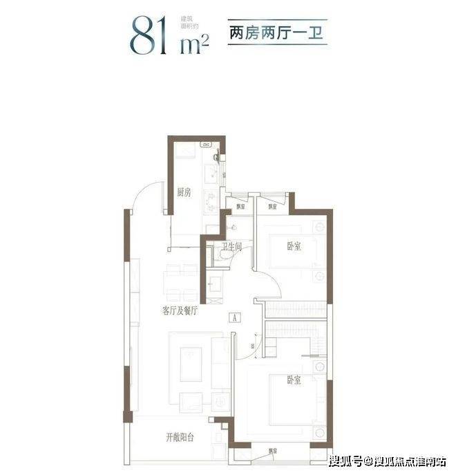 户型特点:小面积,低总价;2房朝南大面宽,舒适生活感受;卧室飘窗设计,释放更多公共空间。