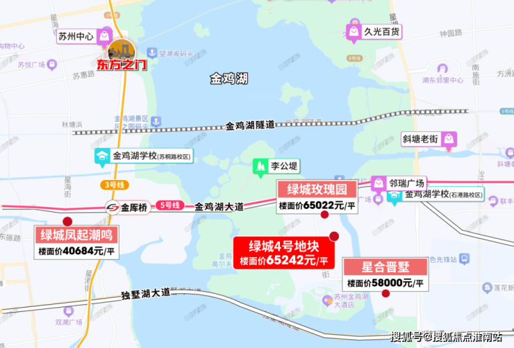 配套上来说,也是比较齐全的。交通上来说,北面靠近金鸡湖大道,直接连接湖西和湖东,往西能上东环,基本上能快速去往核心区。南面靠近独墅湖大道,连接东南环,东面有星湖街,直接串联湖东。北面还有金鸡湖隧道,连接湖西和湖东!