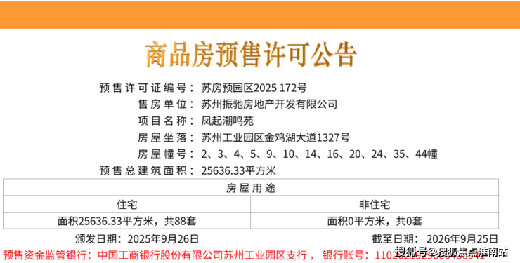 绿城凤起潮鸣,即,苏园土挂(2025)01号地块,位于工业园区东板桥河西、金鸡湖大道南,3月21日,绿城以总价532436万元竞得,成交楼面价40684元/平,溢价率45.3%。