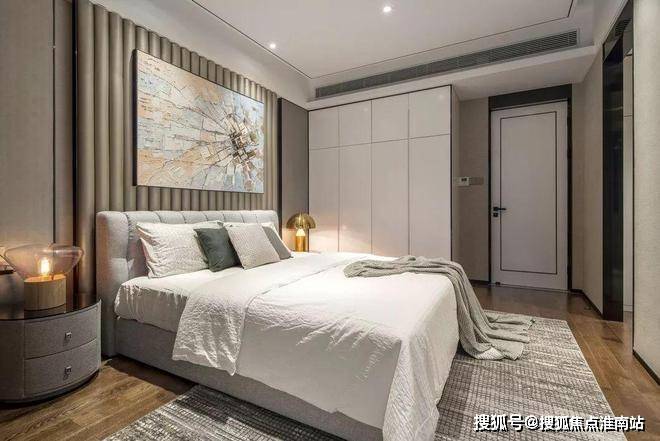 主卧的空间相对较大,背景是利用左侧的窗帘做的对称硬包的处理,其实后面有暗藏的灯带,使层次更为丰富一些,整体的家私和风格的感时舟里开发商预约热线:400-8567-334✔✔杭州时舟里官方售楼处电话☎:400-8567-334✔✔✔觉延续客厅,注重品质和空间的感受。