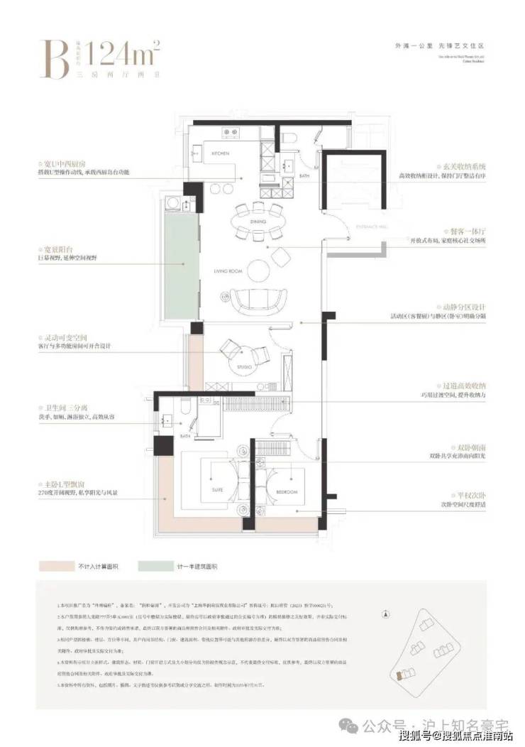 建面124㎡3房样板间展示如下: