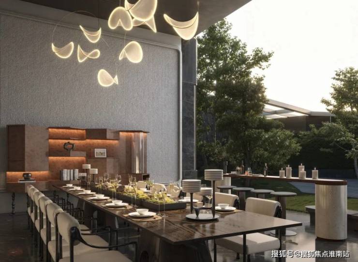 建筑外形上,采用海派现代风格,蓝灰色玻璃、仿铜色铝板、深色石材搭配,将绿城产品的高辨识度再次呈现。