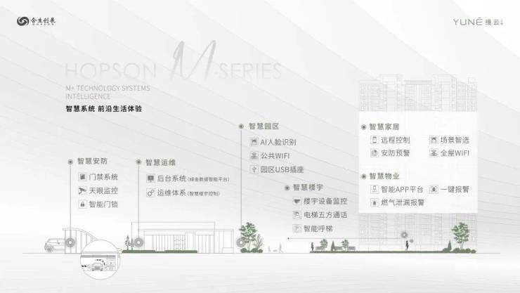 M+科技体系: 首创M+科技体系,以智慧、健康、精工、生态四大体系,赋予空间美好的体验与品质,每一寸细节皆为生活悉心定制。