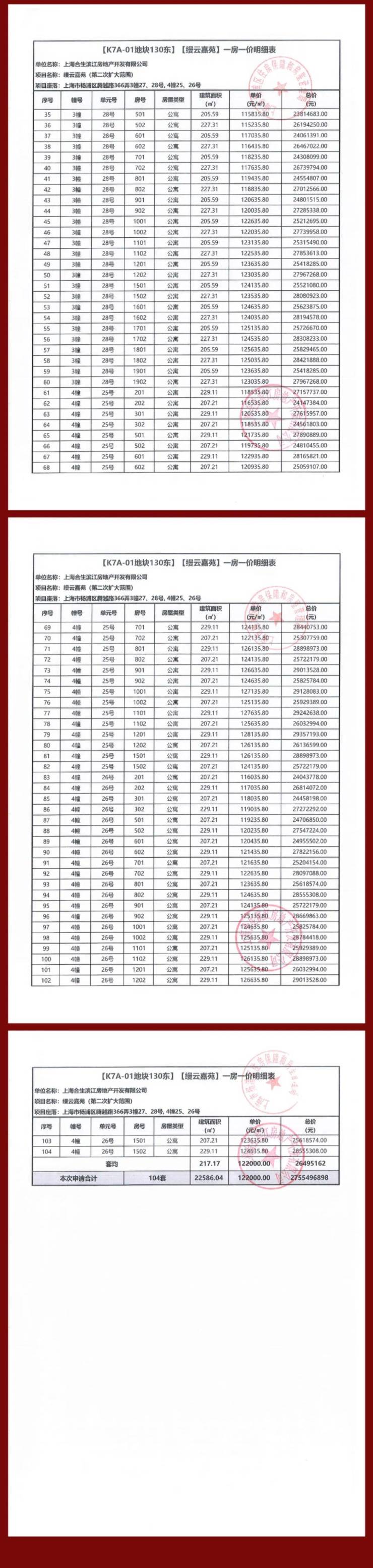 缦云上海三期一房一价表: