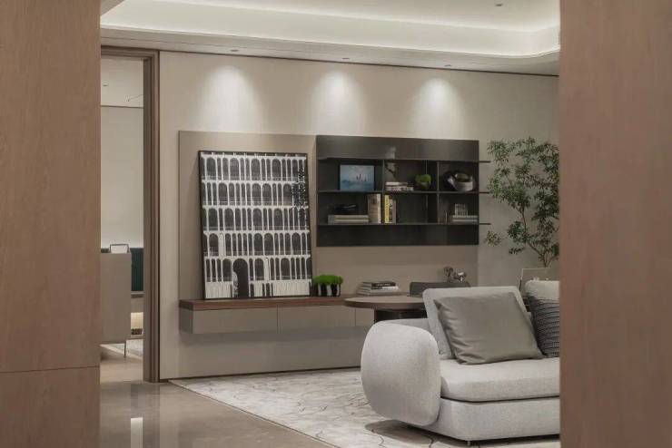 惠房宝已经想象出业主未来的归家场景:坐在此处换鞋,往后随意倚靠,触碰到的不是冰冷的墙面,而是质感柔软的皮革,卸下一日疲惫与风尘再步入双厅......