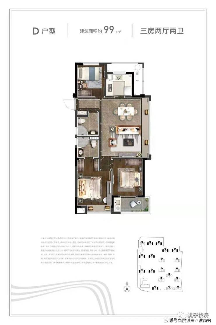 【户型面积】约89-99㎡三房两卫