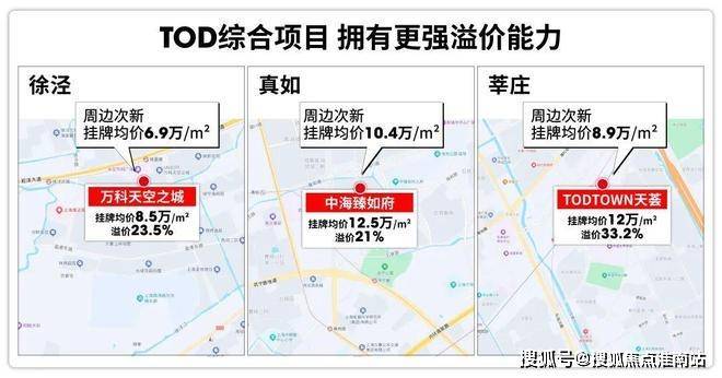相比普通楼盘, TOD综合项目本身也有较强的溢价能力,莘庄天荟、万科天空之城等TOD项目都已给出有说服力的结论。