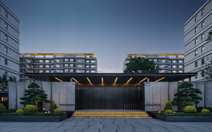 南侧主干道主动退让绿化空间,让归家之路先穿过一片 “城市绿洲”。现代都市与东方韵味相结合的社区主大门,门头两侧,移植的是价值不菲的罗汉松,带来第一眼的视觉盛宴。