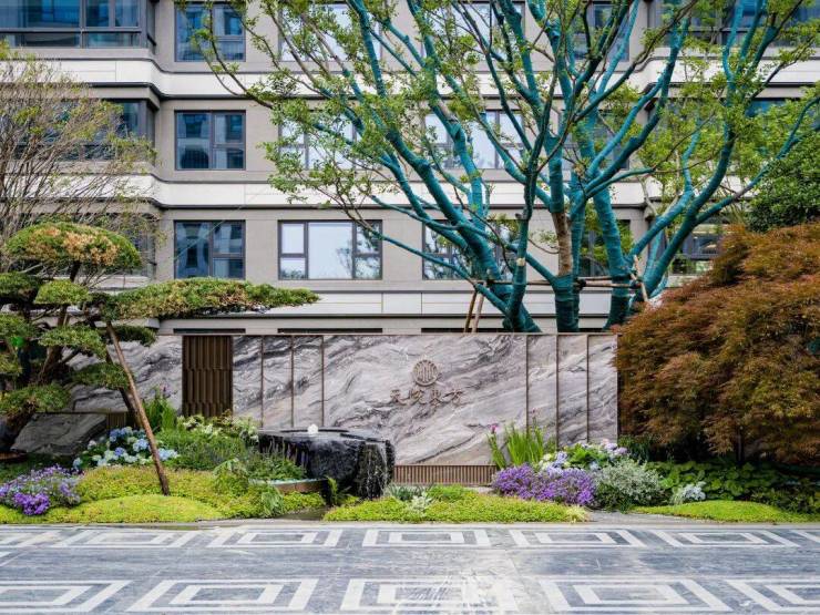 而这还只是第一道序章,园区内还有多道景墙,每一道都造价高昂,造型精致,完成回家的情绪转换。