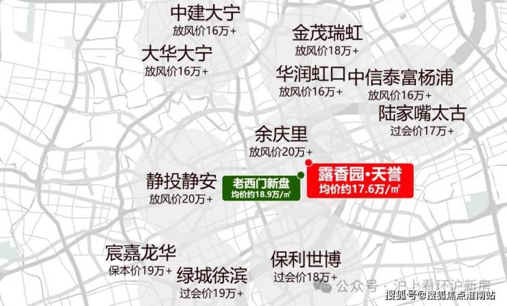 在老西门新盘半年涨价1.1万/㎡至18.9万/㎡的时候,露香园的均价依然仅约17.6万/㎡,确实太香了。