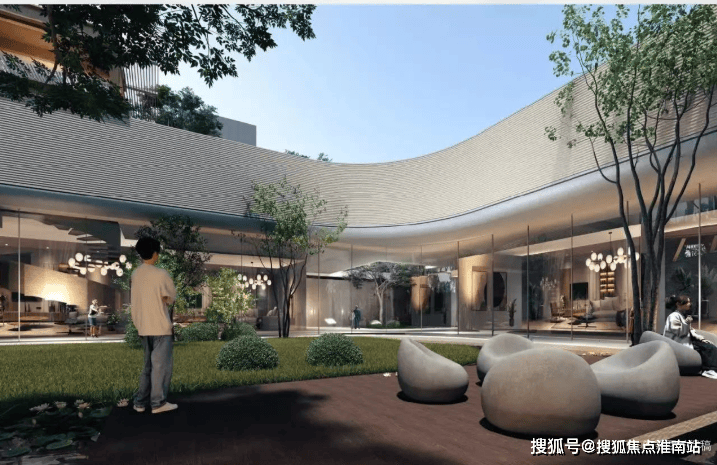 【怀山望】塑造"公园旁"到"公园里"的绿色生态社区,并通过会所设计打造友好开放的创新性社区界面,以优圆弧线条、经典温润材质及精致细部设计打造新型海派建筑气韵。