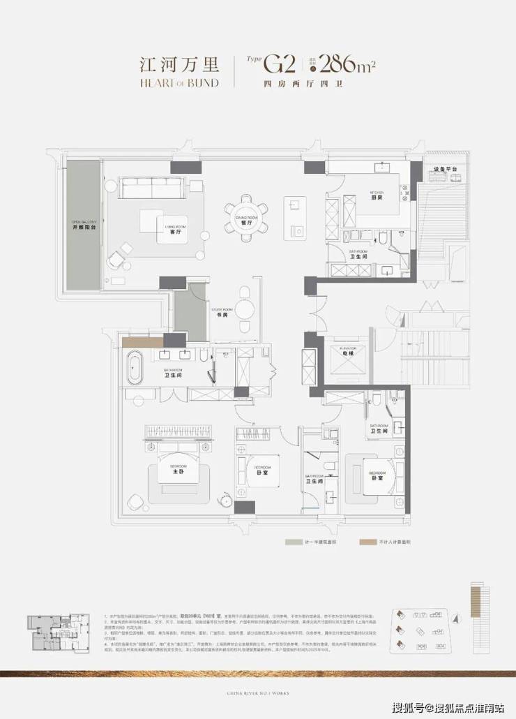超过60平米的开放式空间(客厅、餐厅、X空间、阳台一体化),功能灵活,可满足大型派对或家庭休闲,尺度感直接媲美原来350㎡的滨江户型。
