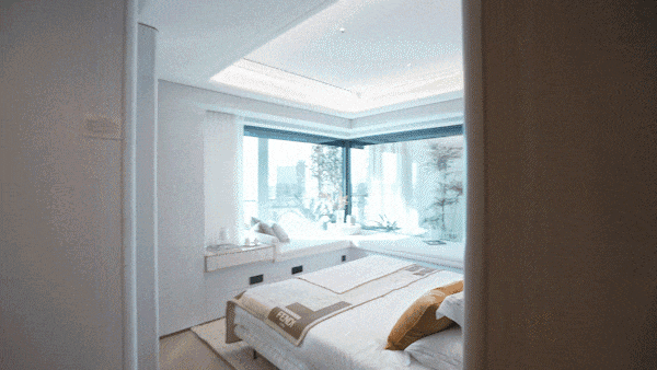 项目的灵动空间也非常丰富,除了大尺度阳台,主次卧配置大飘窗,阳台可以并入房间内,飘窗均为非承重结构,后期同样可砸,灵动空间拓展后整体的尺度感足以媲美以往150㎡的户型。
