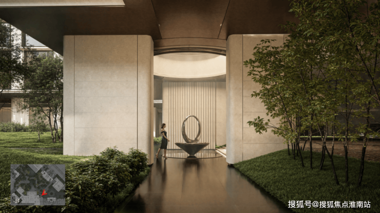 整个社区的景观,也不再是扁平的,架空层与约3500㎡下沉式艺术庭院,形成了约13米的高低差,景观的立体渗透,形成起伏绵延的坡地,漫步社区,犹如游园。
