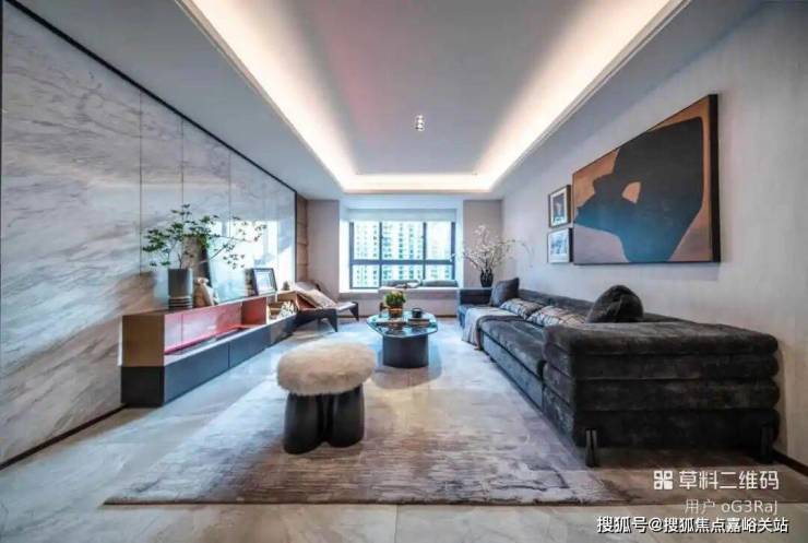 硬装:现代简约,石材 + 真石漆外立面