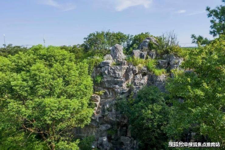 项目南门处以天然巨石堆砌,斥数亿巨资打造的一座长约300米、宽约20-30米、高约7-8米(最高处达13米)的南山,将曼荼园隐藏于一方世外桃源之中,再现“悠然见南山”之境。