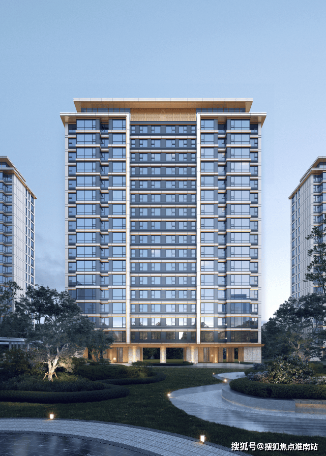 项目外立面设计上,立面利用大面积玻璃+阳台落地窗+金属型材+层间装饰提升建筑整体感和精致度,顶层外挑飘板使得建筑立面体块清晰,层次丰富。