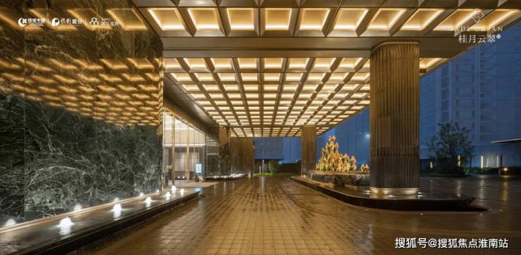 高定归家: 约50m的“翡月之门”,是绿城保利交控·桂月云翠带给人的最初印象。流金穹顶与皇家金檀大理石构画的背景前,一方环岛车行落客区,令五星级酒店式归家成为现实。“明月松间照,清泉石上流。”王维独到的山水观,在 下沉式庭院“空翠砯崖”上演。