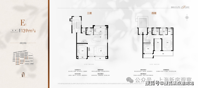 132–139㎡精奢上叠:南向面宽约9.2米,首层LDKB一体化设计 + 超大U型厨房,顶层配备超9米全景三露台,可打造空中花园或观景茶室,总价区间860–910万元