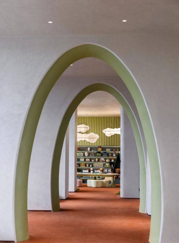 在5号楼下的架空层,设计腾出空间做了一整层的超大童玩空间,整体面积超过480平米,运用大面积的落地玻璃窗,让这个区域变的更加透亮。让绿意充分渗入,实现近距离、无遮挡观景视野。