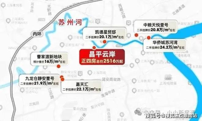 昌平云岸位于寸土寸金的老静安核芯,抱揽苏州河得天独厚的自然景观,享有良好的水岸视野,项目整体地块东高西低,符合堪舆学中青龙抬头,白虎屈服之势。上风上水正位堪舆,藏风聚气,玉带环腰聚财纳瑞,珍藏价值拉满!