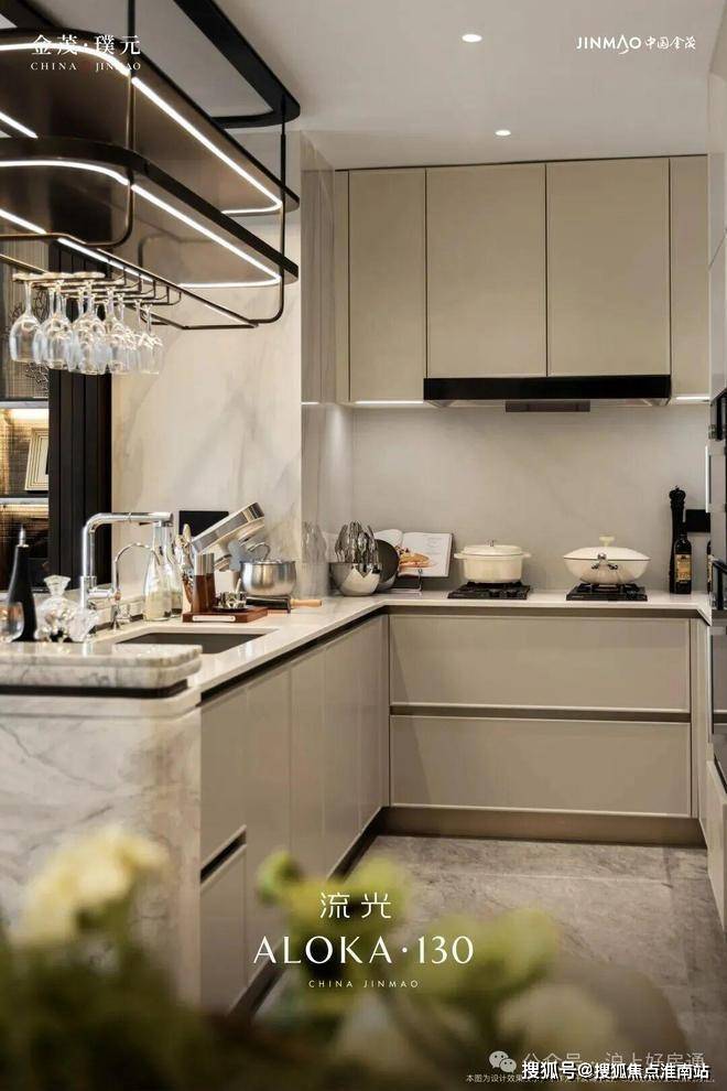厨房是更实用的U型布局,搭配一个独立的中央岛台,✅✅金茂璞元售楼处电话:400-891-9910✅✅形成家庭的第二互动中心,孩子写作业、朋友来喝杯咖啡,都能在这里进行