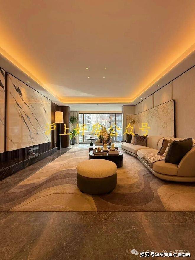 客厅背景墙,奢石的冰凉触感和立体弧线造型很有质感,✅✅金茂璞元售楼处电话:400-891-9910✅✅据说这个弧度的耗材率是平面的1.5倍,成本惊人!