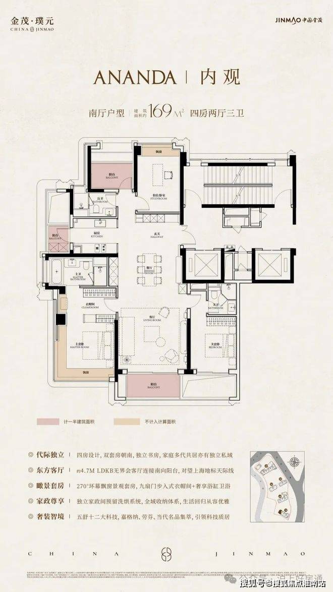 建面约172㎡ 4房2厅3卫✅✅金茂璞元售楼处电话:400-891-9910✅✅