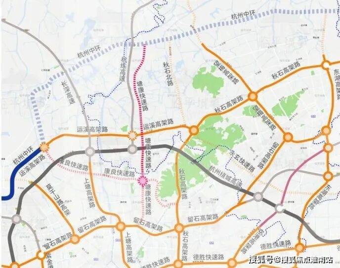 2、临近未来南北交通大动脉:去年9月公布的杭州市综合交通专项规划(2021-2035)批复中,市区城市道路系统布局规划图显示,规划的塘康路为城市一级主干道。未来将会南接留石高架路,构建杭州城北新的南北向快速交通大动脉。塘康路位于崇贤板块的正中间,与项目直线距离1.3KM。