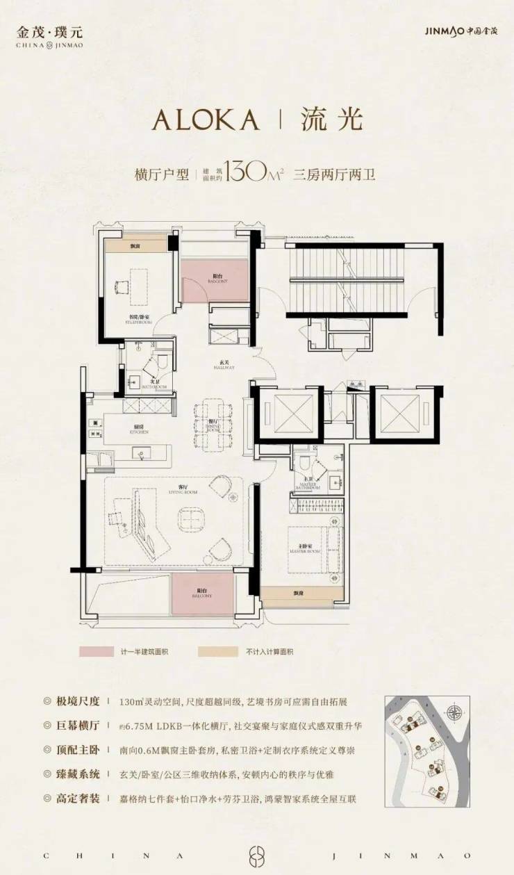 130㎡ 3 房 2 厅 2 卫:三开间朝南、6.7 米横厅、LDKB 一体化;总价 1819-2235 万