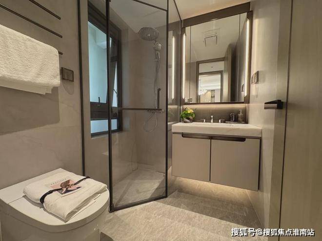 主卧独立套房,带全明卫生间,主卧床头软包也是交付的。卫生间除了高仪、杜拉维特等品牌外,淋浴屏是国产高端品牌玫瑰岛,细节上增设了 电热毛巾架,大户型的主卫还有卡德维浴缸