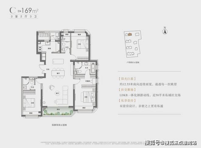 目前开放的是建面约101㎡3房和约169㎡3房两个样板间,直接来看101㎡现场实拍。