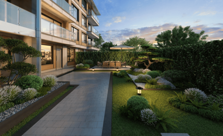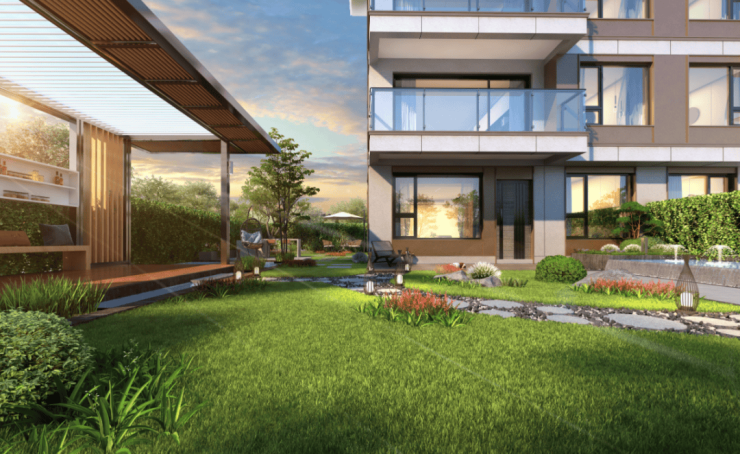 下叠精髓是亲近自然的庭前绿地,面积可观,延展出大家庭多种居住的可能性。