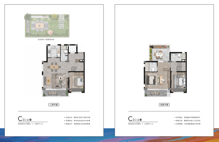 上叠配专属电梯直达3层,下叠享南向庭院,均为独立入户设计