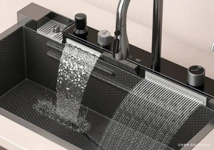 厨房水槽升级为多功能网红大水槽,同时满足清洗、切菜、沥水功能,省时省空间,菱纹旋钮一键开关,调节水温,方便高效。龙头升级为抽拉式水龙头,抽出龙头软管,对水槽内部进行360度的全方位清洗,随意控制龙头出水模式,应对多种使用场景。