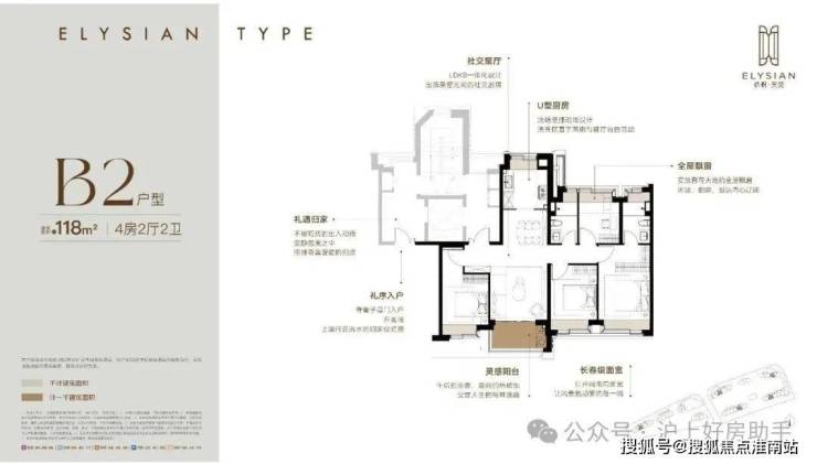 约118m²四房两厅两卫(B2户型)