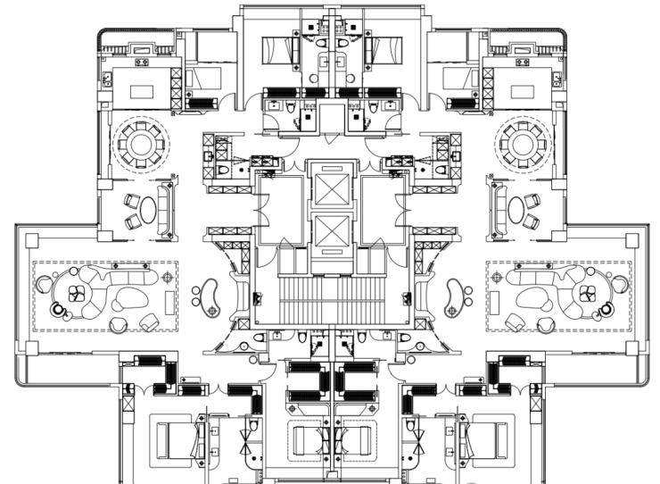 以下为建面约370㎡户型过程稿亮点: