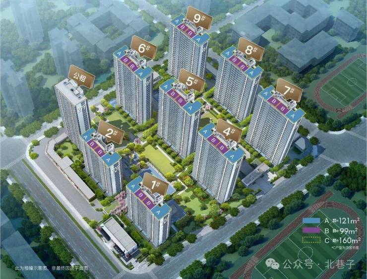 在售户型面积:99㎡三房两厅一卫、121㎡四房两厅两卫、160㎡顶跃四房两厅两卫(少量)