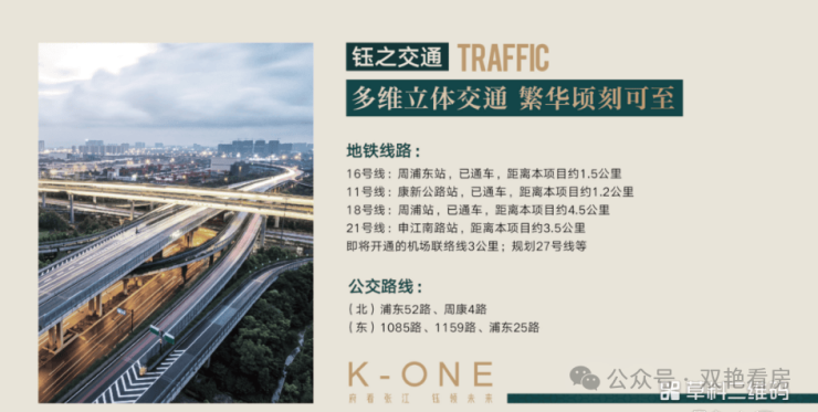 轨交枢纽:6轨环绕,距离11号线康新公路站仅1.2公里、16号线周浦东站1.5公里、即将开通的机场联络线3公里,21号线(建设中)申江南路站3.5公里、18号线周浦站4.5公里,还有规划中的27号线等地铁线路