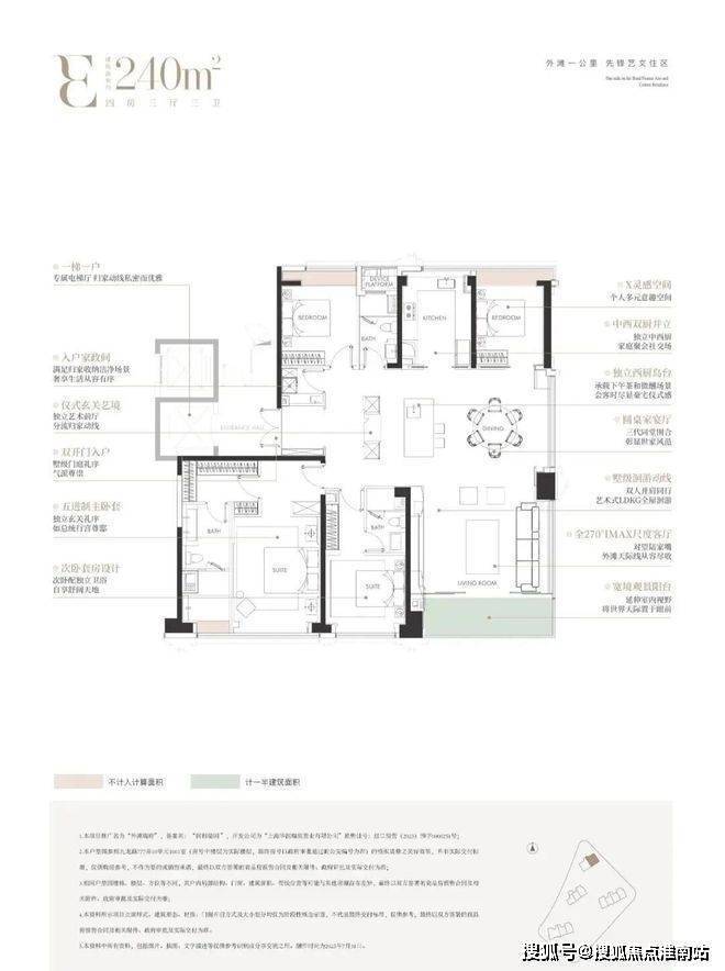 建面约 165㎡四房:空间尺度升级,客厅大开间搭配景观阳台,部分户型可直观外滩与黄浦江景,支持“无界空间”理念。