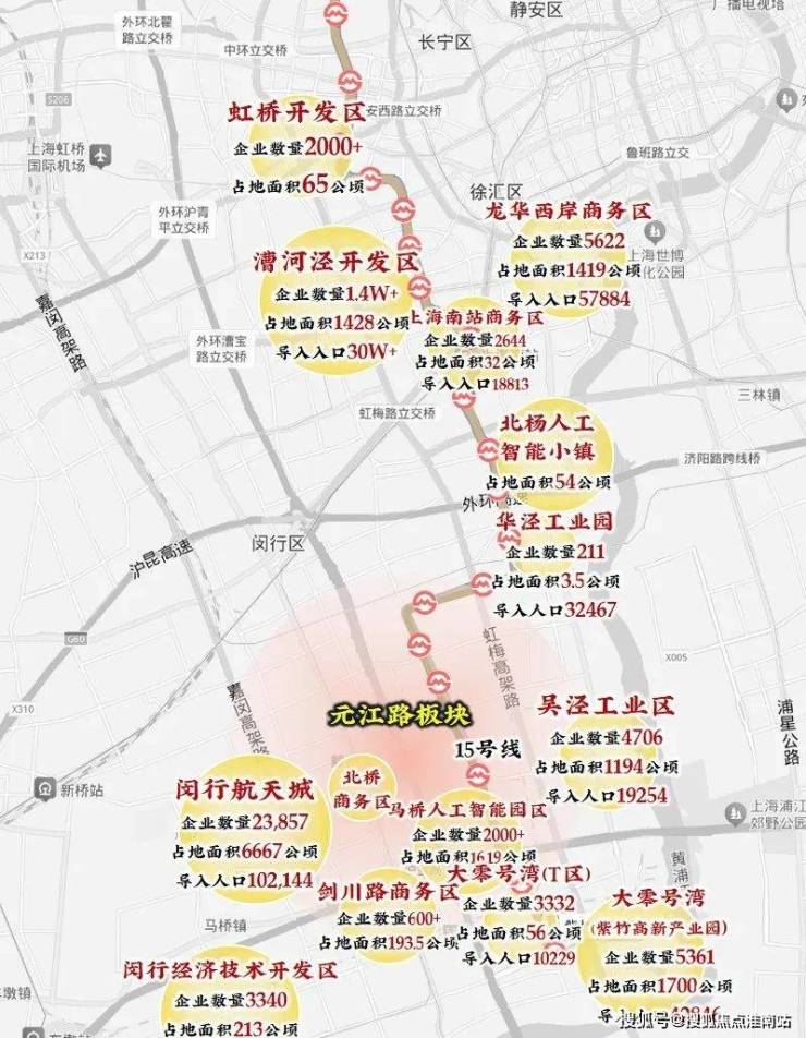 同时,还能依托15号线这条上海科创产业的超级动脉,一路贯穿虹桥开发区、闵行经开区、大零号湾等重要产业集群,直接把沿线14个产业园区70万+产业人口“一网打尽”!