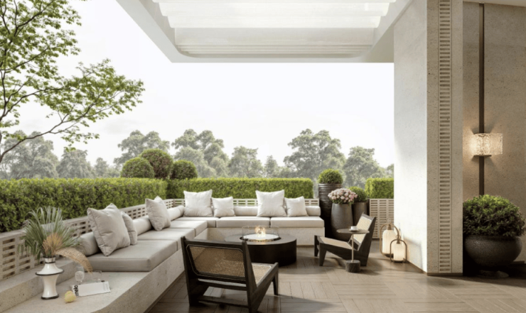 三重立体庭院体系,第一次实现了「上下叠庭院平权」